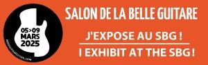 - Je serai également présent et exposerai lors des INTERNATIONALES de la GUITARE en OCCITANIE. Le salon se déroule les 18 et 19 Octobre 2025 à la Halle de la Cité – TOULOUSE. (Entrée Gratuite)